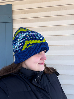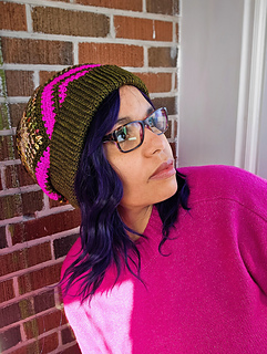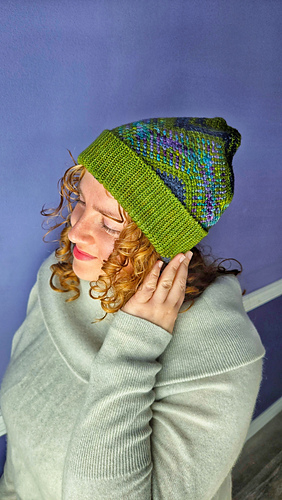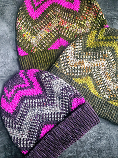 First came the Transitory Wrap, then the Transitory cowl, and now the Transitory Beanie. The Transitory patterns reminds us that for better or worse, everything changes. If you stay the course, something new will come. This jazzy hat with a fold over brim invites you to spend some time in the present moment with its mindful stitches and clever use of increases and decreases to create dynamic shaping. And no worries — no complex colorwork is needed to achieve the look you see here. If you just want to dabble in the Transitory vibes while stash-busting (like, I used less than 30 grams of yarn for my 2 contrasting colors), this is the hat for you.