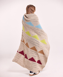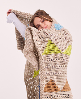Use the intarsia method of changing colors. When changing from one color to the next, work up to the final pull through of a stitch, finishing with the new color. Use a separate ball of color for each section. A border is added after assembly.
