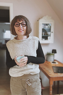 Truudi Vestover is a classic unisex slipover with a rolled edge at the neckline, saddle shoulders and a slightly wider body. Truudi is worked seamlessly top down in stockinette stitch. The neckline is shaped with short rows (German short rows), while at the same time the saddle shoulders are worked with right and left leaning increases in right- and wrong side rows. Then, the shoulder stitches are placed on hold and front and back are worked flat separately to the end of the armholes.