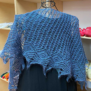 The shawl Stella is similar in its shape to the bestselling pattern LazyKaty. The shawl has an arched, asymmetrical triangular shape. One edge is wider than the other. Cast on a few stitches and work a simple, easy to memorize lace pattern between increases. Continue increasing until you have reached the desired length / width of your shawl. Finish with the edging. Fast to knit, but an eyecatcher nonetheless!