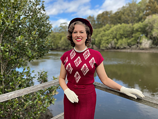 Pattern suggests option of omitting lower ribbing and adding straight knitted skirt instead for a dress.