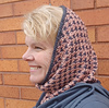 Sized to allow it to be worn as an around the neck cowl, it also can be pulled up around the head to be worn as a “snood”.