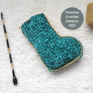 This pattern is for a super cozy and fun Tunisian crochet stocking that can be completed by an advanced beginner! It is made with simple stitch and the project can be completed in a few hours to elevate your holiday decor!