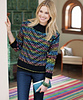 Ever since I discovered traditional, handmade Turkish socks, I have been in love with the diagonal colorwork patterns used to decorate them. In this sweater, I’ve expanded a traditional sock motif to cover the body and sleeves of a pullover. The pattern forms a “V” at the center front and back of the body and the sleeves are worked with the diagonals facing in opposite directions to further accentuate the mirror image around the central axis.