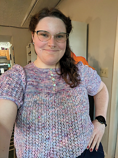 Materials required: Five ozs. fingering 3-ply; 1 pr. each of Nos. 8 and 10 needles; 4 buttons; 1 steel crochet hook size 2.