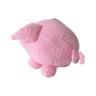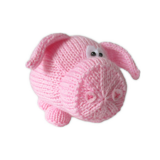 This cuddly pink piggy would make a lovely toy, or an ornament to cheer up your bookshelf. This simple knitting pattern uses only uses a few basic stitches: knit, purl, a k2tog decrease and a kfb increase. Designed by Amanda Berry @fluffandfuzz, the piglet is knitted in acrylic DK yarns on single pointed needles (not in the round).