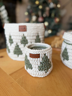 This listing includes three nesting basket sizes, detailed written instructions, full mosaic charts, PLUS a supporting video tutorial showing you how to crochet a Christmas basket using the overlay mosaic technique.