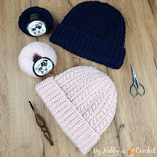 This crochet hat with folded over brim features a distinctive, knit-like texture achieved through special, but easy crochet stitches, providing both elasticity and warmth.