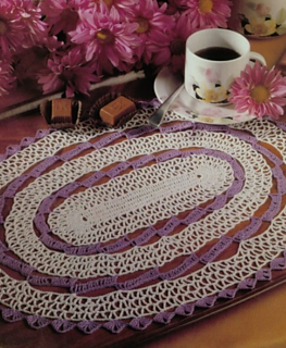White and purple oval doily.
