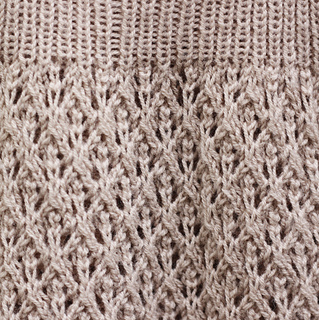 Gauge (after blocking): 30 sts and 40 rows = 10 cm 4” in eyelet stitch pattern with 3 mm / US2.5 needles