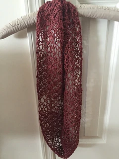A ripply tape yarn gives a scrumply interest to a crochet lace stitch. The pattern is easy enough, but you will challenge yourself with altered stitch definition. Blocking transforms the lace into a go-to crochet accessory.
