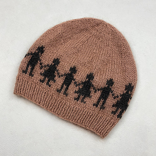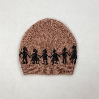 Unicef Beanie is worked in the round from the bottom up and features a charted Fair Isle pattern of children holding hands. You start with the ribbed brim, continue in stockinette stitch and the Fair Isle pattern, before shaping the crown of the hat with decreases. It is worked with two contrasting colorways, using 1 strand of Merino + 1 strand of Soft Silk Mohair held together throughout.