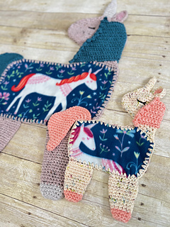 This unicorn lovey design comes with two different size options. The large pattern measures approximately 21 inches wide, and 28 inches tall from head to toe, making a great security blanket!