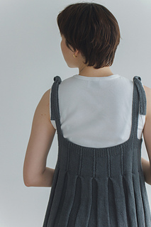 身頃上を模様編み、縁編みと肩ひもを編んで仕上げます。