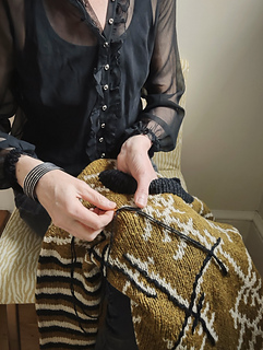 Alternative yarn suggestion- De Rerum Natura, Gilliatt (100% wool; 100g / 273 yds / 250 meters in colors Poivre Blanc, Ebene and Genet.