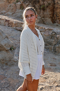 This Kimono-style jacket is great for those cool summer nights when you feel like wrapping up with something soft and delicate. The yarn used, made out of bamboo fibre, is the perfect choice for a piece like that. The kimono is knitted in one piece and has wide armholes and 3/4 sleeves that make it wonderful to pair with any look.