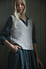 The name of this vest is Finnish and means a wooden or woven basket or container. Susanna Kaartinen was inspired by the geometric pattern in these baskets that are woven from birch bark. The contrast between the geometric pattern and a rustic yarn is interesting. Susanna intentionally opted for a more rustic look, with softer less defined lines and textures. This creates a vest with subtle visual interest, making it a versatile wardrobe staple.