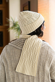 Here is a deliciously soft, warm, and lightweight cap in four sizes (S, M, L, XL) to match the Vanilla Velvet scarf/cowl. Classic cable twists cuddle your ears and head to ward off the chill of fall, winter, or early spring. Knit here with a sumptuous luxury blend, it would be equally cozy in a nubbly yarn choice if a rustic look is what you have in mind. Worked in knit/purl combinations with occasional simple cable crosses, this is a great project for new cable knitters and a relaxing distraction for those more experienced. A great way to use a single trophy skein too!