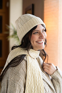 Shown is the cap in size Small with the Vanilla Velvet Scarf, knit in Bare Naked Wools Cupid Fingering, color Marshmallow
