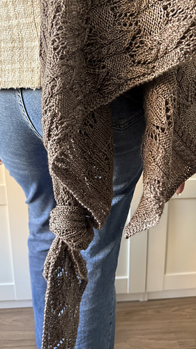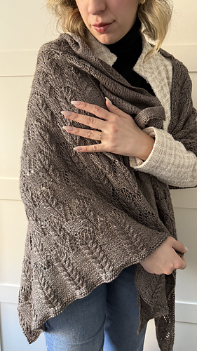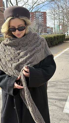 Se recomienda bloquear suavemente la prenda para que el chal adquiera su forma definitiva y luzca todo su diseño.