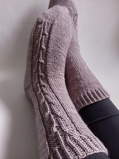 Inspired by the delicate beauty of spring catkins, this sock features a subtle line of small aments running along the side, set against a clean stockinette background that lets sock yarn shine. Mindless yet stunning, the simple, rhythmic texture is easy to memorize and relaxing to knit. Written for both top-down and toe-up constructions, this pattern keeps the focus on the yarn, with a refined accent that elevates the whole sock.