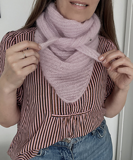 Yarn amount: I used 2 balls of DROPS Kid-Silk for the light sample, and slightly less for the gray (smaller) version with leftovers. To get proper drape and coverage, I suggest not going below the listed finished measurements for the smaller size, and choosing your yarn with that in mind.