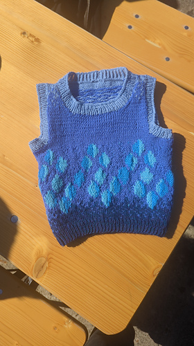 - Needles: 3,5mm (US4) and 3mm (US 2,5) straight or circular needles with approx. 40–60cm (16”-24”) depending the size and version you are knitting / 3mm (US2,5) double pointed needles or shorties (for the collar/armhole ribbing of the round version).