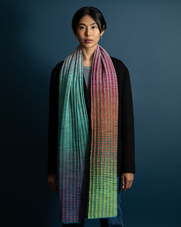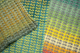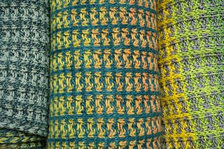 Vertical Beats is a simple slip stitch pattern with big visual impact. It has a strong vertical texture and colored stripes that are created with yarns that change colors slowly. The slip stitches create vertical lines of color.