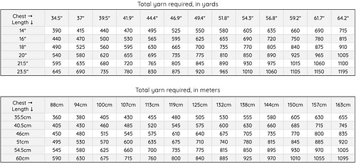 - See last photo for total yardage and find yours by picking the desired length and chest circumference of the finished piece