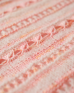 The fabric features stripes in five stitch patterns, from stockinette to lace.