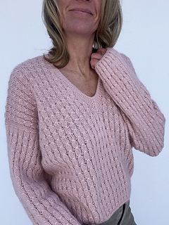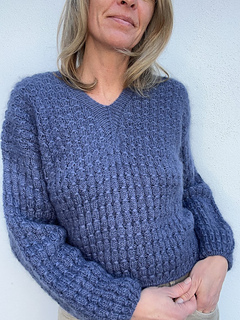 VesterbyCrea.No.16 er en kort fittet sweater strikket med smock mønster og med V-hals. Modellen strikkes oppefra og ned. I begyndelsen strikkes øverste del af ryggen. Hver skulder strikkes derefter ved at samle masker op langs ryggens opslagskant hvor der strikkes en kant med tværgående dobbeltstrik. Herfra samles masker op igen til hvert forstykke som strikkes med udtagninger for at danne V-halsen. For- og bagstykke samles under ærmegabet og kroppen strikkes rundt med smock mønsteret. Kroppen afsluttes med en kort dobbeltstrikket kant samt italiensk aflukning. Ærmekanter samles op langs armåbningerne og strikkes rundt med smock mønsteret og afsluttes også med en kort dobbeltstrikket kant samt italiensk aflukning. Sweateren er monteringsfri.