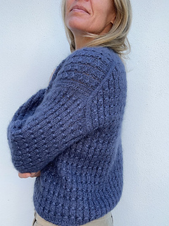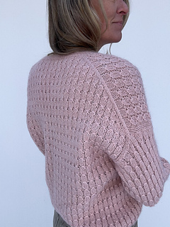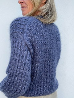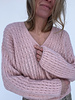 Der strikker med én tråd mohair og én tråd aplaca uld.