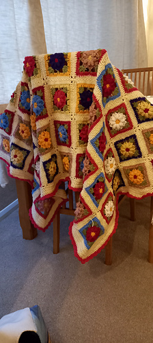 A bright appealing Crochet Blanket in vintage flower colours. Popcorn stitches create a gorgeous square with texture. An easy joining technique is explained.