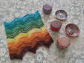 Yarn: 264 yards/240 meters of merino wool fingering weight yarn that knits up to 7-7.5 sts/inch.