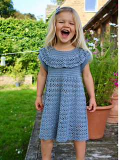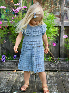 I absolutely love Stylecraft Naturals yarn with cotton and bamboo (not sponsored ). I first used it for the Josephine Dress and completely fell in love. So when I saw this moody blue shade called Downpour, I knew I had to turn it into another dress. I had this vision of an exaggerated lace ruffle around the yoke, and it came together even better than I imagined.