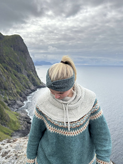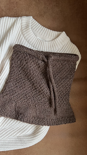 Først med dobbel vrangbord, deretter med dobbel perlestrikk til oppgitte mål.