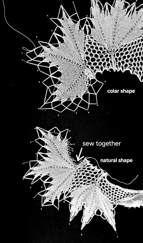 Collar in a wine-leaf (grape-leaf?) pattern knitted from fine yarn no. 200.