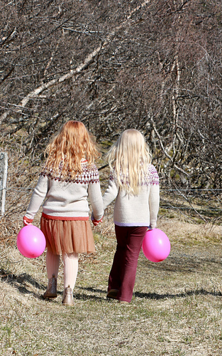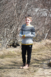 Vorleysing for kids is a top-down seamless circular yoke sweater with colorwork. Inspired by the traditional Icelandic sweater. You cast on at the neckline and knit down following the chart. When the yoke is finished the sleeves are separated from the body by slipping stitches onto a holder or waste yarn and are knitted later. When the main body is finished, you transfer the sleeve stiches from the holder/waste yarn to a needle and pick up stiches from the armhole. Then the sleeves are knitted from the armhole to the wrist. It is easy to adjust the length