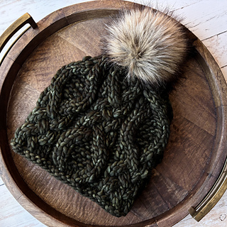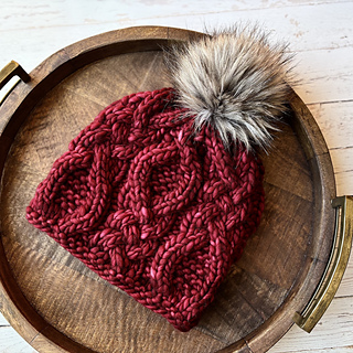 This is a PDF knit pattern to make a braided cable hat in adult size in multiple weights of yarn: worsted, light bulky, bulky (chunky), and super bulky. The pattern also includes a separate PDF of large print cable definitions to print out as a cheat sheet (idea suggested by my testers).