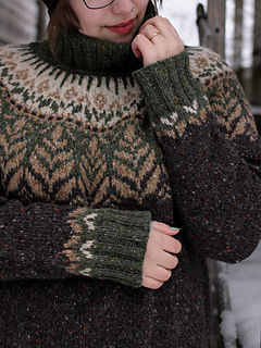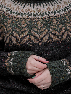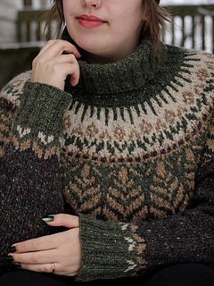 Walden has a nature inspired colourwork yoke and a cozy, outdoorsy fit perfect for an outer layer. For a more regular fit make sure to size down.