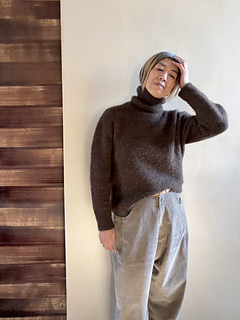 Walking Thru the Park Sweater is a relaxed, plain sweater. It has armholes to accommodate easier movements for arms, streamlined body shape towards the bottom hem, and the round neck with just right size of opening: all of these give the ease to any parts of body. Not only it is a good everyday sweater, it can work as a perfect athleisure sweater for walking or traveling. The collar can be modified to long turtleneck to wear scrunched or folded in half or shorter mock neck for more comfortable fitting.