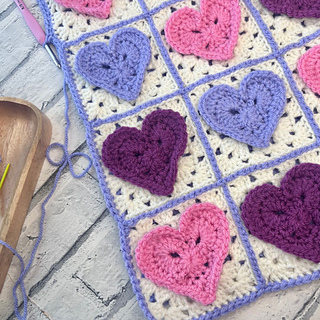 The Granny Heart Cushion pattern is a thoughtful, heart-led crochet design that starts with a small granny heart motif, gently layered into a classic granny square, and finished by joining sixteen squares into a soft, comforting cushion.