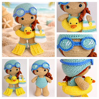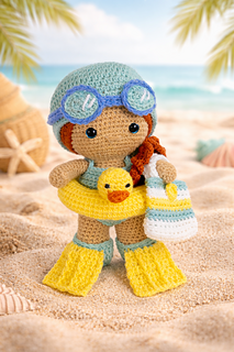 Get your Weebee ready for a fun-filled day at the beach with this adorable, fully removable outfit set! This detailed 13-page pattern is designed to perfectly fit the Standard Sized Weebee Doll (please note: THE DOLL IS A FREE PATTERN available here).