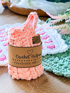 This hotpad is designed to be quick, relaxing, and incredibly satisfying to crochet. It starts out flat in rows (with yarn held doubled) using my signature Wheat Stitch™, worked in a super simple 4-row repeat, the kind you memorize fast and then happily crochet on autopilot. Perfect for evening stitching, TV watching, or when your brain wants a break but your hands still want to make something cute.