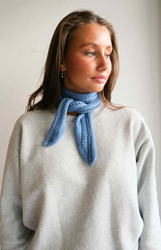 Knitting kit with yarn and free digital knitting pattern for a small scarf. A cute little scarf - the perfect accessory for the season. Knit back and forth with a simple lace pattern.