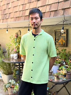 The Whisky Sour shirt is knitted flat with raglan sleeves. First, a faux “double-knitting” collar is knitted in the round from an invisible cast-on. Short rows are worked into the collar and at the start of the body to lengthen the back. The button band is added last by picking up stitches along the front edge.