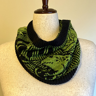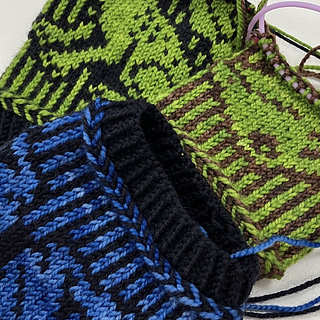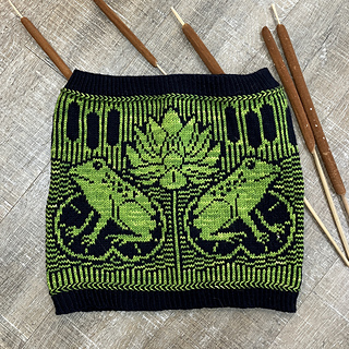 When I saw my local yarn crawl was featuring a frog, I wanted a fun colorwork cowl with a frog and didn’t really find something to my liking so combined some of my favorite techniques in this colorwork cowl featuring a frog on a lily pad with a lily/lotus flower and cattails. Where possible, color changes were optimized for shorter repeat to reduce how often floats need to be trapped (I trap/wrap color every 4-5 stitches). This pattern also feature Latvian braids.