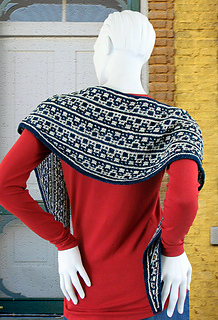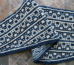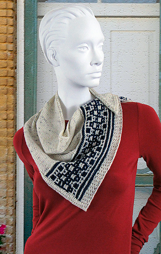 Ideal for the discerning gift recipient, or just for yourself, the shawl and cowl are perfect accents for any wardrobe. And best when knit in very contrasting colors, such as the dark blue and white shown.