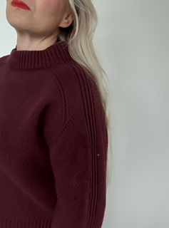The twisted rib raglan lines continue seamlessly from the neckline through the body and down to the hem, creating a polished and refined look. All ribbings are worked in twisted rib. The neckline ribbing can either be left high or folded and secured double to the inside for a clean finish.