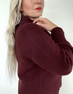 The Winehouse Sweater is a timelessly elegant knit, worked seamlessly from the top down in one piece. It features beautiful details along the shoulder seams that flow from the armhole all the way down to the hem.